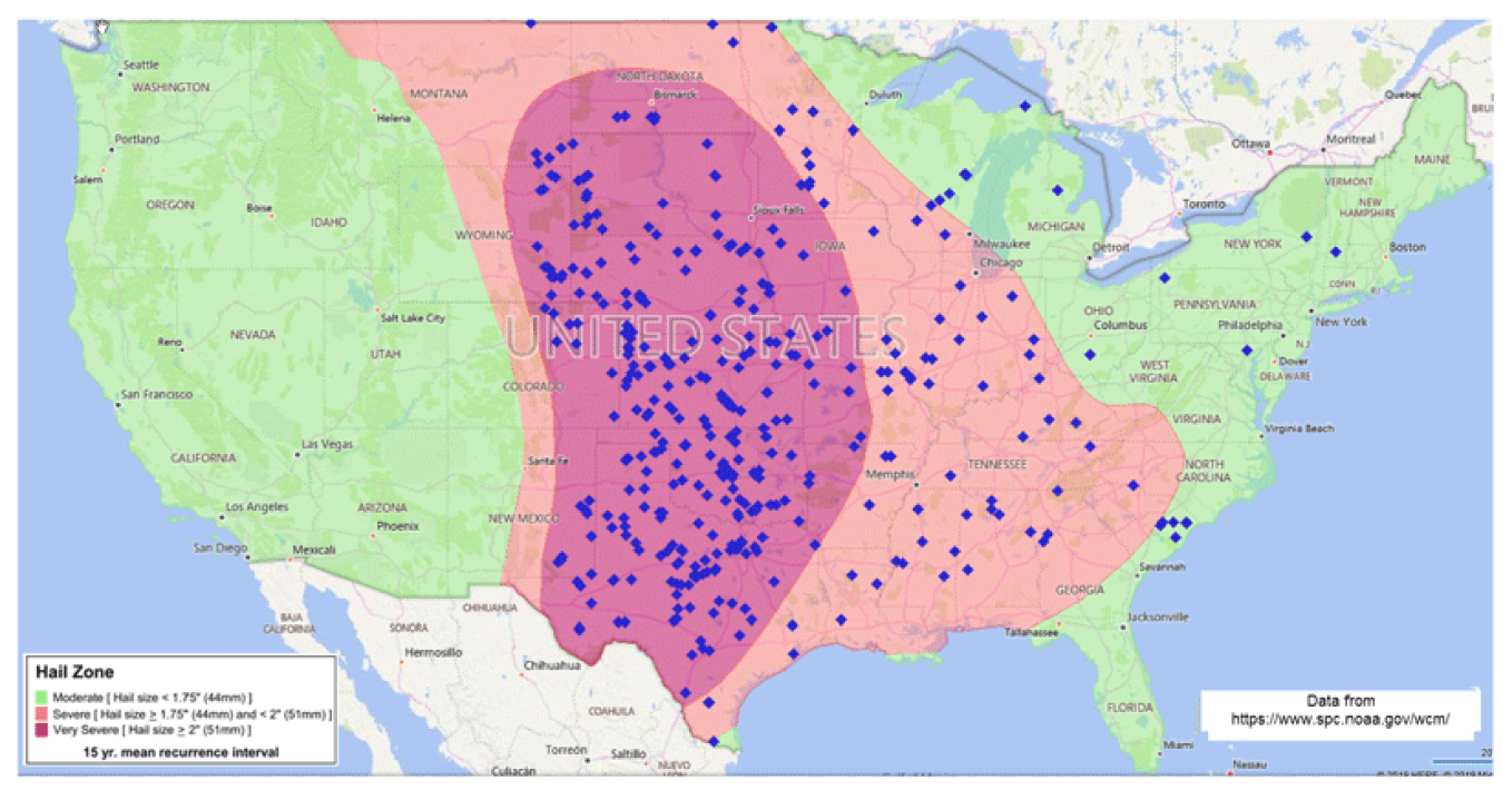 For instance, a panel stamped with UL61730 has been subjected to rigorous testing in a series of solar panel hail damage tests, where it’s pummeled with ice balls that can be as large as three inches in diameter and fired at speeds of nearly 90 miles per hour. The end result is (almost) hail-proof solar panels built to endure and continue functioning in the face of weather. But we say ‘almost’ because hail events are now getting more frequent and intense.